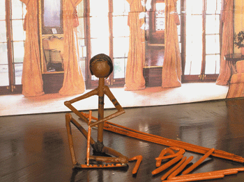 Bush TVs: piliyi good oneAlison AlderNyinkka Nyunyu is an art and culture centre located on Warumungu land in Tennant Creek, right in the middle of the Northern Territory. The centre opened in July 2003 after many years of planning, research, consultation and fund-raising. From the time the idea came up to build something alongside the sacred site of Nyinkka Nyunyu (the home of the spiky tailed goanna) art was always going to be an integral part of the project as well as the primary means of transferring information across generations, language groups, nationalities and interests. Traditional owners of partta, (hard rock country) the country on which Tennant Creek stands, wanted to make sure that the wumpurrarni (Warumungu) version of history and contemporary life was told ‘the proper way’, a fair request although it was difficult to know exactly how that was going to be achieved. The idea of dioramas, or Bush TVs, as they became known within the community, came about through a series of brainstorming sessions to discover the means to present history and contemporary life through art to a diverse audience. A process of workshops began to find a common visual thread to tie the dioramas together and a Warumungu artist, Jimmy Frank Jnr, who was experienced in working with wood, was asked to make some prototypes of the figurative elements for the Bush TVs. There were several constraints that Junior had to work within. Such as the figures being able to be made by many people with a variety of skills and not being recognisable as any particular person. Junior was also instructed by some senior Aboriginal women (Edith Graham Nakkamarra and Judy Nixon Nakkamarra) to use the wood of kalkarti (acacia cowleana or soapbush) as it was readily available, soft and easy to carve. Junior worked on the concept and came up with the idea of a simple stick figure made out of kalkarti, with the head, hands and feet made out of Spinifex resin. The figures were elegant and adaptable, and it was decided to go ahead with the idea. When full-scale production began, the team making the dioramas dropped the Spinifex resin as everyone melted their hands when trying to manipulate the resin and changed over to clay, which was much easier to use. (The Spinifex resin is burnt over a fire on top of a spade, and has to be moulded when very hot otherwise it is too hard to manipulate. Men who regularly work with the resin develop hard callouses on their hands.) The team making the dioramas was made up of a wide variety of people, and although all had Aboriginality in common nearly all being Warumungu most had no art making experience and had never seen a diorama before. It became a process of experimentation and discovery to find the means to express the ideas put forward by the elders who were directing the whole process of the interpretive display for Nyinkka Nyunyu. |